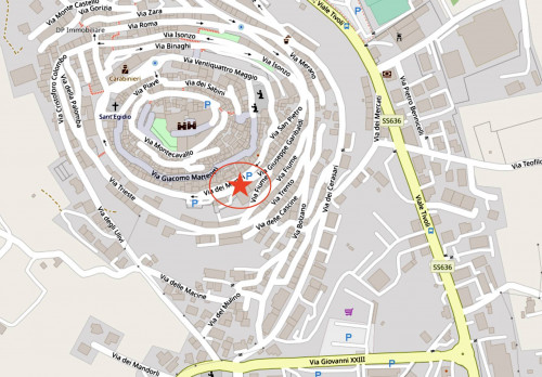 Siamo a pochi passi dalla piazza principale, che si raggiunge percorrendo la via panoramica, dove è possibile trovare posto per l'auto; a pochi metri si trova la fermata del servizio urbano che collega i punti importanti del paese sabino e la stazione di Piana Bella del treno metropolitano FM1 (Fara S.-Fiumicino Aer.), con passaggio ogni 15 minuti per arrivare a Roma. Non sono distanti i negozi di prossimità e i servizi comunali.