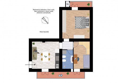 L'Appartamento si trova al secondo piano di un piccolo condominio senza ascensore, con gestione familiare. Il portone d'ingresso e il tetto sono stati ristrutturati di recente, garantendo la massima sicurezza e tranquillità.