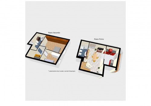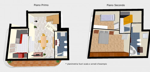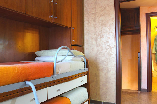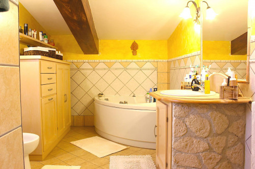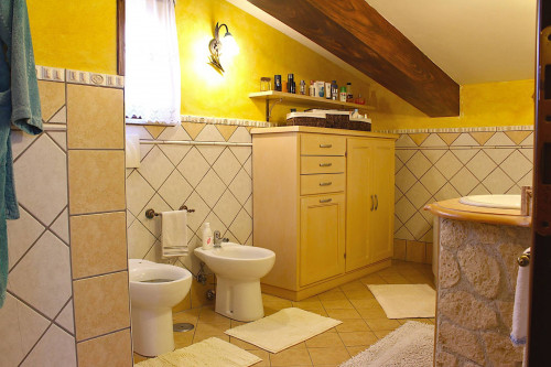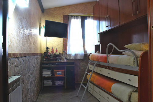 Tramite un'elegante scala in legno si accede alla soffitta al livello superiore, in parte mansardato ma comunque con spazi vivibili e ben sfruttati: qui troviamo una camera da letto, una cameretta e un bagno con vasca idromassaggio. Nel disimpegno e nella parte più bassa della camera principale sono stati istallati dei comodi armadi a muro.