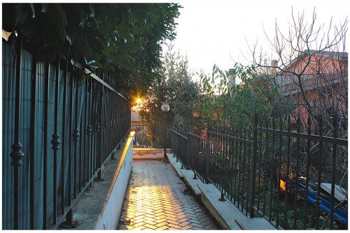 L'accesso avviene attraverso un cancello pedonale comune e poi tramite un vialetto mattonato si giunge alla scala che porta all'abitazione.
