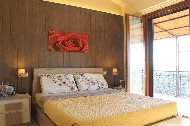 Il balcone angolare e terrazzato, ampio e luminoso, affaccia a sud-ovest e permette una vista sulla vallata sottostante, per godersi il sole e la bellezza della natura direttamente da casa, fino al tramonto.