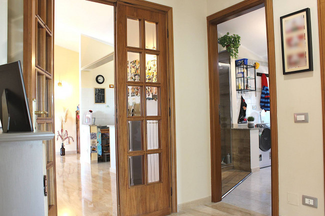 Ci troviamo al primo piano di un piccolo condominio fuori dal centro abitato, in strada dei Ferrari, nella zona della campagna di Palombara Sabina posta sotto la Casa della Salute, a meno di 1 km dal centro urbano.