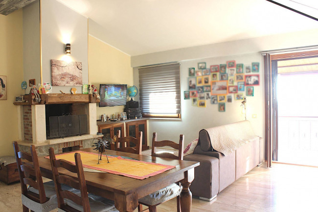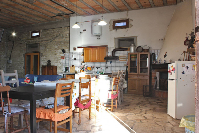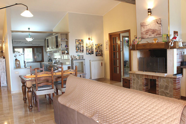 Il salone con camino è il centro di questa casa. Luogo perfetto per trascorrere serate invernali davanti al fuoco e condividere momenti speciali, con il cucinotto a vista i cui arredi sono compresi nella Vendita.