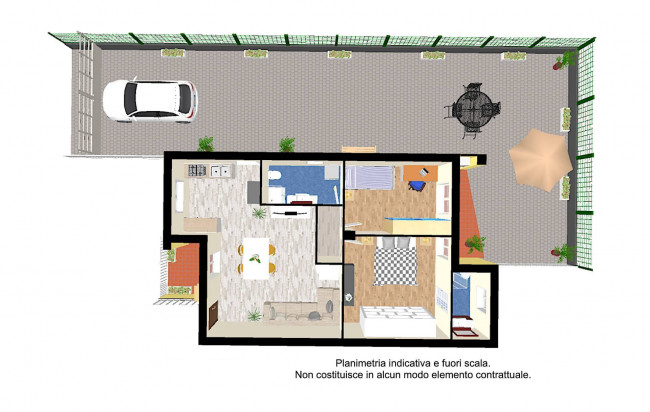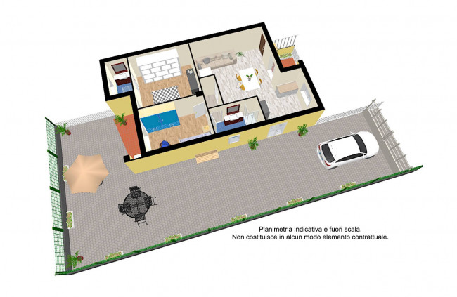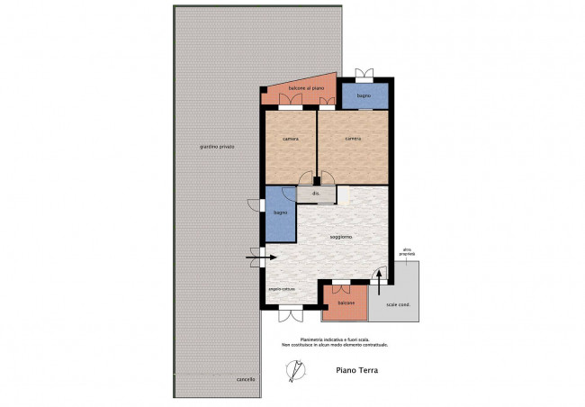 Appartamento al piano terra, semindipendente, con giardino e garage.