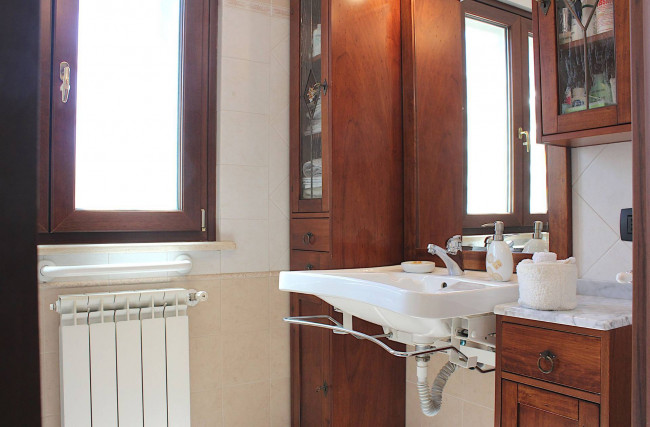 Gli infissi interni sono in alluminio doppio vetro, quelli esterni sono persiane in ferro antiscasso, con zanzariere e grate antieffrazione; il portone d'ingresso principale è blindato. I condizionatori sono presenti nelle due camere da letto e nel soggiorno. Presente un'autoclave con la riserva d'acqua.