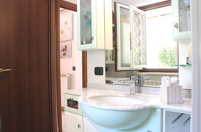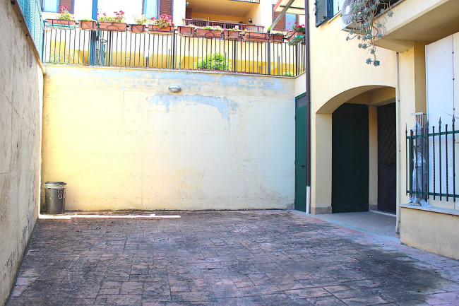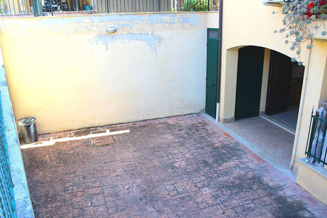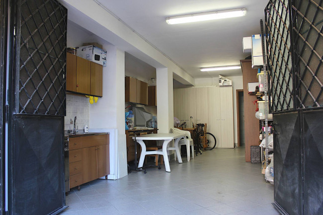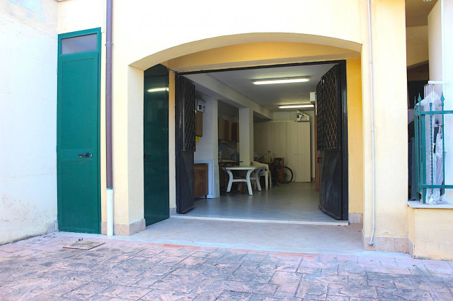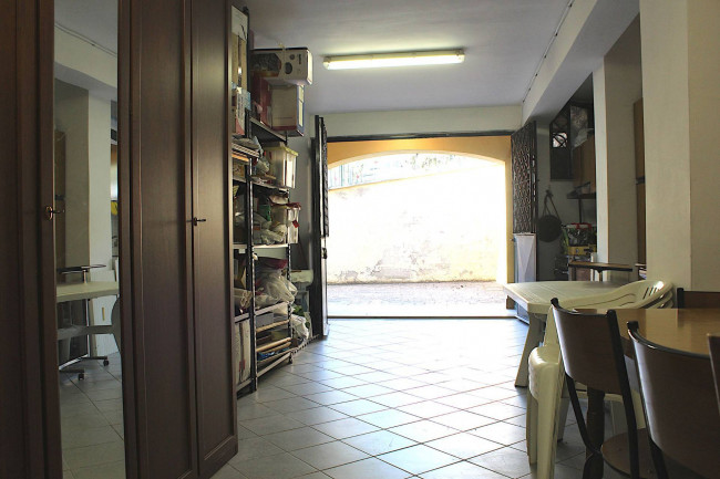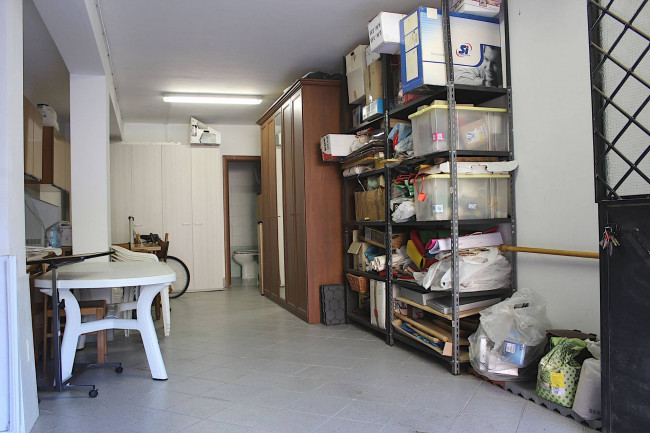 Al piano seminterrato si trova il locale garage, di circa 30 mq, a cui si accede uscendo nel vialetto di passaggio e poi attraverso la corte esterna: la porzione di area antistante il garage è di proprietà esclusiva e misura circa 40 mq. Il locale è mattonato e rifinito, vi sono tutti i servizi idrici e igienici, nonché citofono, telefono e antenna.