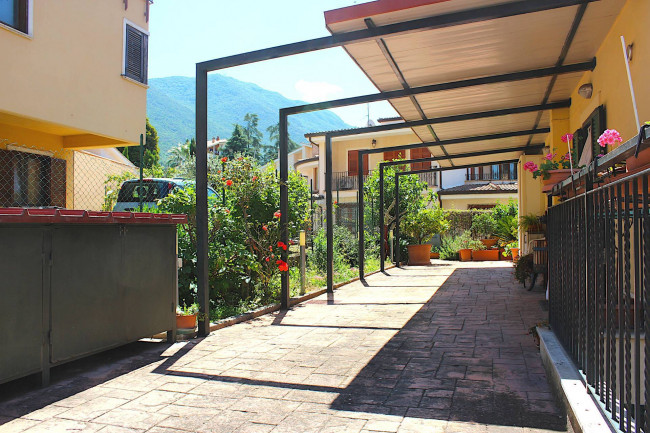 Nella corte esterna si trova un grande armadio in alluminio e un capiente contenitore per la legna e gli attrezzi del giardino. Presente anche l'impianto d'irrigazione manuale.