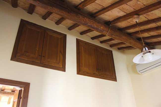 L'abitazione, con doppio ingresso indipendente, è stato completamente ristrutturata con gusto e attenzione ai particolari. Il recupero dei materiali autentici, come per le travi in legno a vista e le tavelle per il soffitto, dona all'ambiente calore e autenticità.