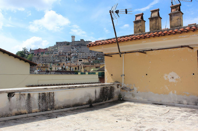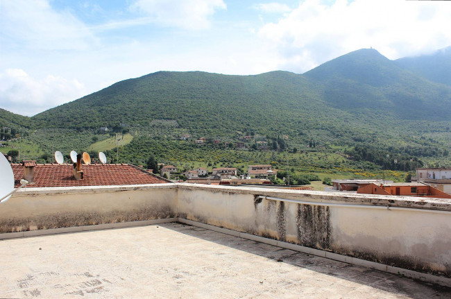 Salendo tramite la scala condominiale al piano superiore, si accede al terrazzo di pertinenza esclusiva di circa 53 mq che permette di godersi l'aria aperta e la vista dei monti Lucretili stando al centro del paese.