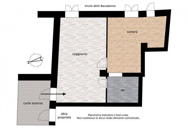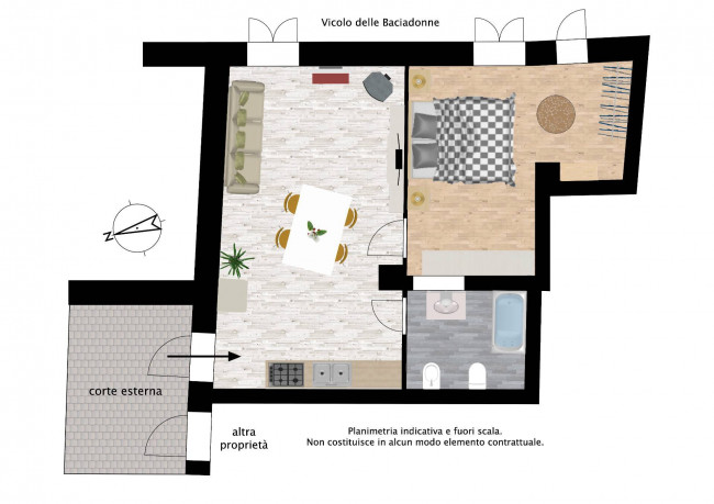 Bilocale ristrutturato sul vicolo delle Baciadonne.