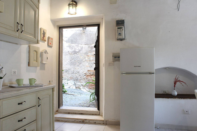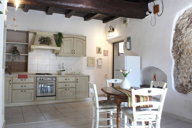 Una breve scalinata sulla via e si accede all'Appartamento, con entrata indipendente, al piano terra, con una piccola corte comune frontale. La casa è stata completamente ristrutturata qualche anno fa, rendendo tutto funzionale e pratico, mantenendo l'originale struttura del soffitto in travi di legno.