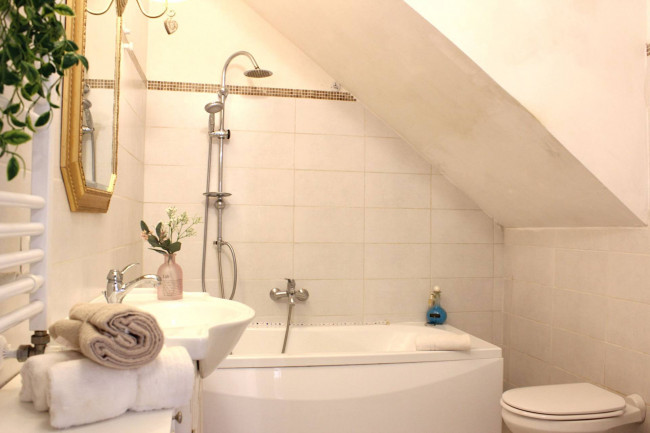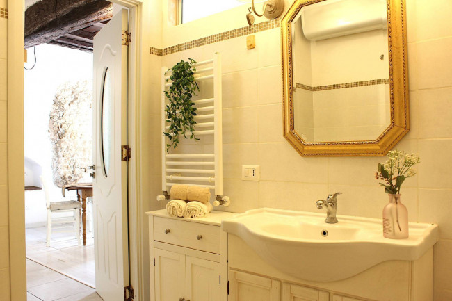Il bagno è fornito di vasca e ha lo spazio per la lavatrice. L'acqua sanitaria è garantita da un boiler capiente e di ultima generazione. C'è anche la predisposizione per i termosifoni, se si volesse installare la caldaia a metano.