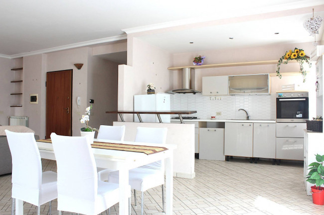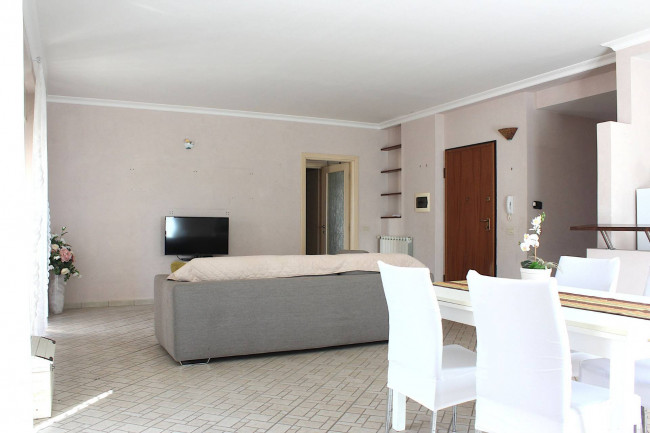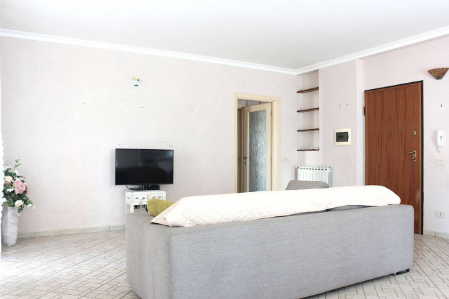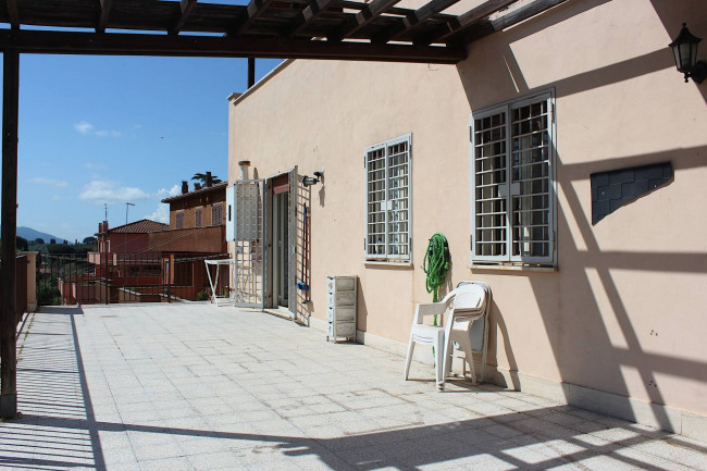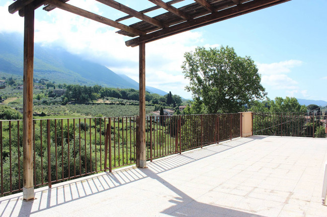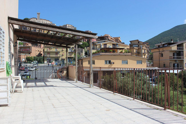 Attraverso il portoncino blindato, si entra nella sala, ampia e con l'angolo cottura. Dal salone si esce sul terrazzo, di circa 50 mq, che guarda verso sud, con il Monte Gennaro e la catena dei Lucretili a fare da sfondo: uno spazio all'aperto in cui godersi le belle giornate e le serate estive.