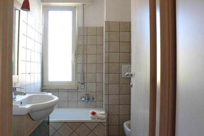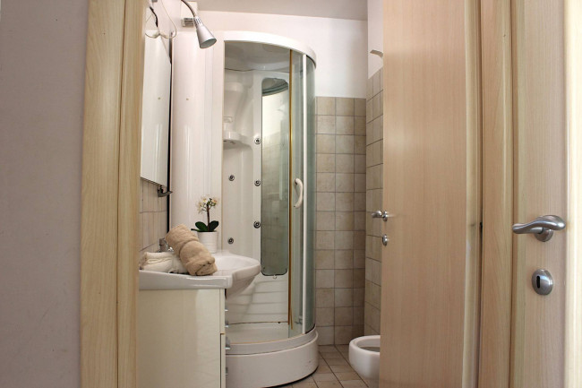 Le camere da letto sono oggi due, di cui una con bagno privato con doccia; potrebbero tornare ad essere tre come in origine con un piccolo intervento edilizio. Il secondo bagno, comune e in fondo al corridoio, è dotato di una mezza vasca.