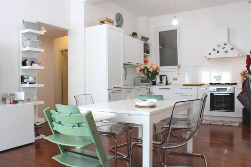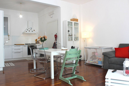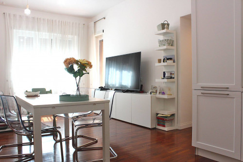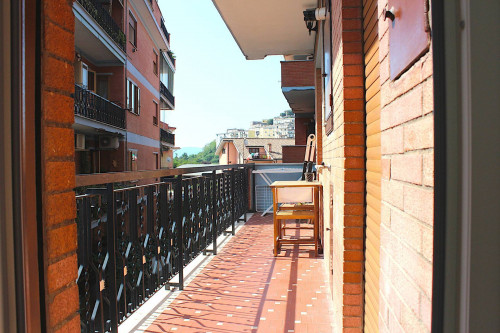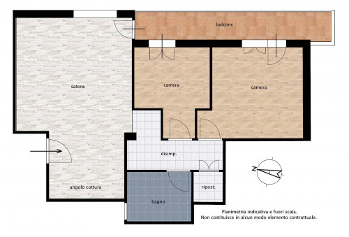 Entrando troviamo la zona giorno con il salone con accesso al balcone su cui affacciano anche le camere, e l'angolo cottura con un'utile finestra sulla chiostrina interna.